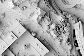 L'ombrage des MNT, MNS, MNC peut se faire avec les algorithmes classiques mais les résultats sont bien plus intéressants avec des ombrages plus sophistiqués